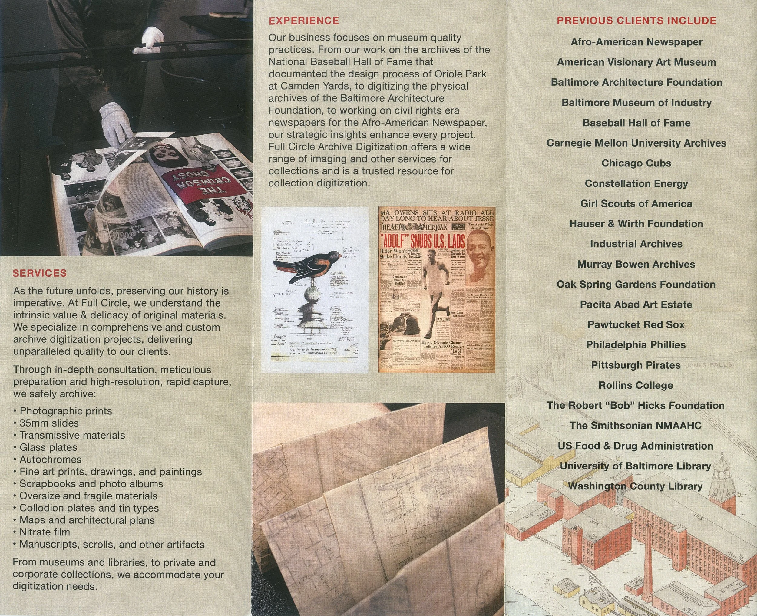 Your history is an asset to the future. Full Circle has offered professional fine art services to artists, galleries, museums, and corporate and private collections since 1987. Thoughtfully designed marketing materials bring their impact into focus. Designed for today.Rooted in photography’s heritage.